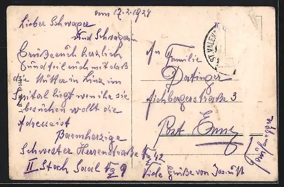 alte Ansichtskarte, gelaufen 1924, Briefmarke entfernt, rückseitig Oberflächenschaden, guter Zustand
