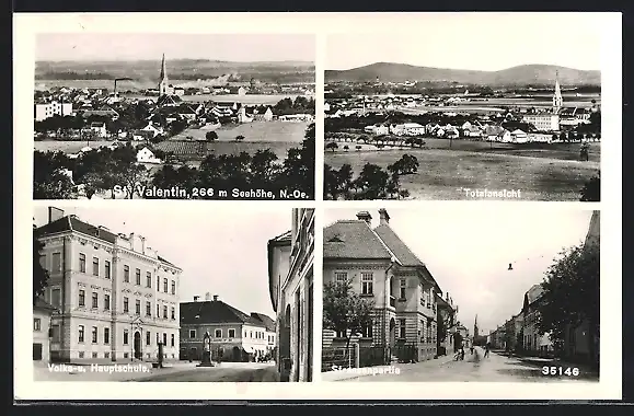 AK St. Valentin, Totalansicht, Volks- und Hauptschule, Strassenpartie