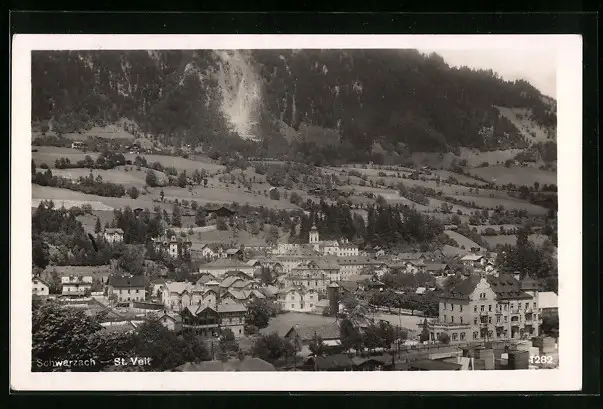 AK St. Veit /Schwarzach, Gesamtansicht des Ortes mit Steilhang