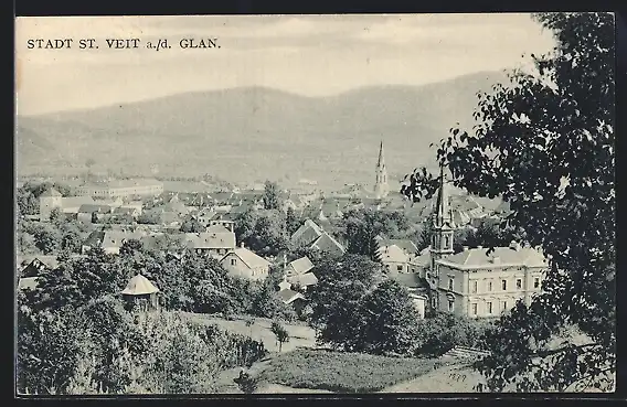 AK St. Veit a. d. Glan, Ortsansicht mit Türmen von einer Anhöhe aus