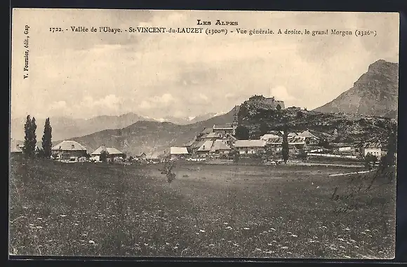 AK St-Vincent-du-Lauzet, 1300m, Vue générale. À droite, le grand Morgan, 2326m