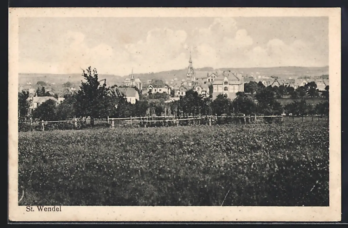 AK St. Wendel, Stadtansicht mit Kirche und Wohnhäusern
