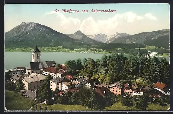 AK St. Wolfgang, Teilansicht mit Kirche vom Calvarienberg