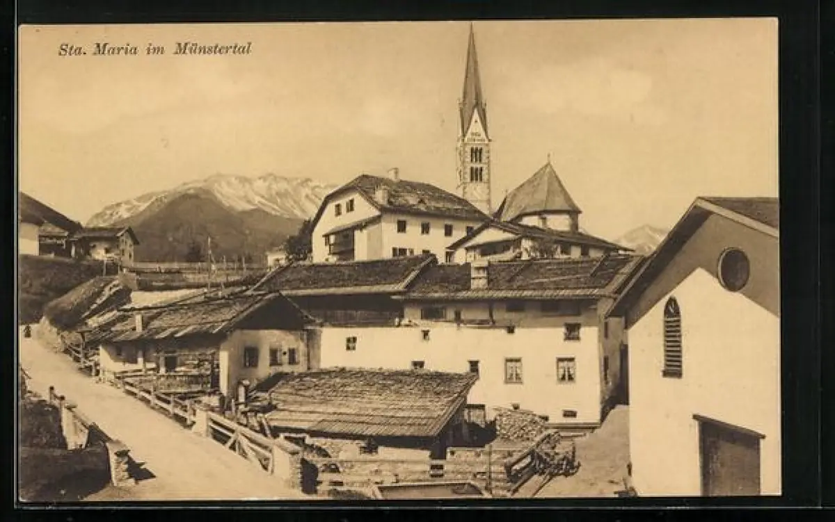 AK Sta. Maria im Münstertal, Ortspartie mit Blick zur Kirche