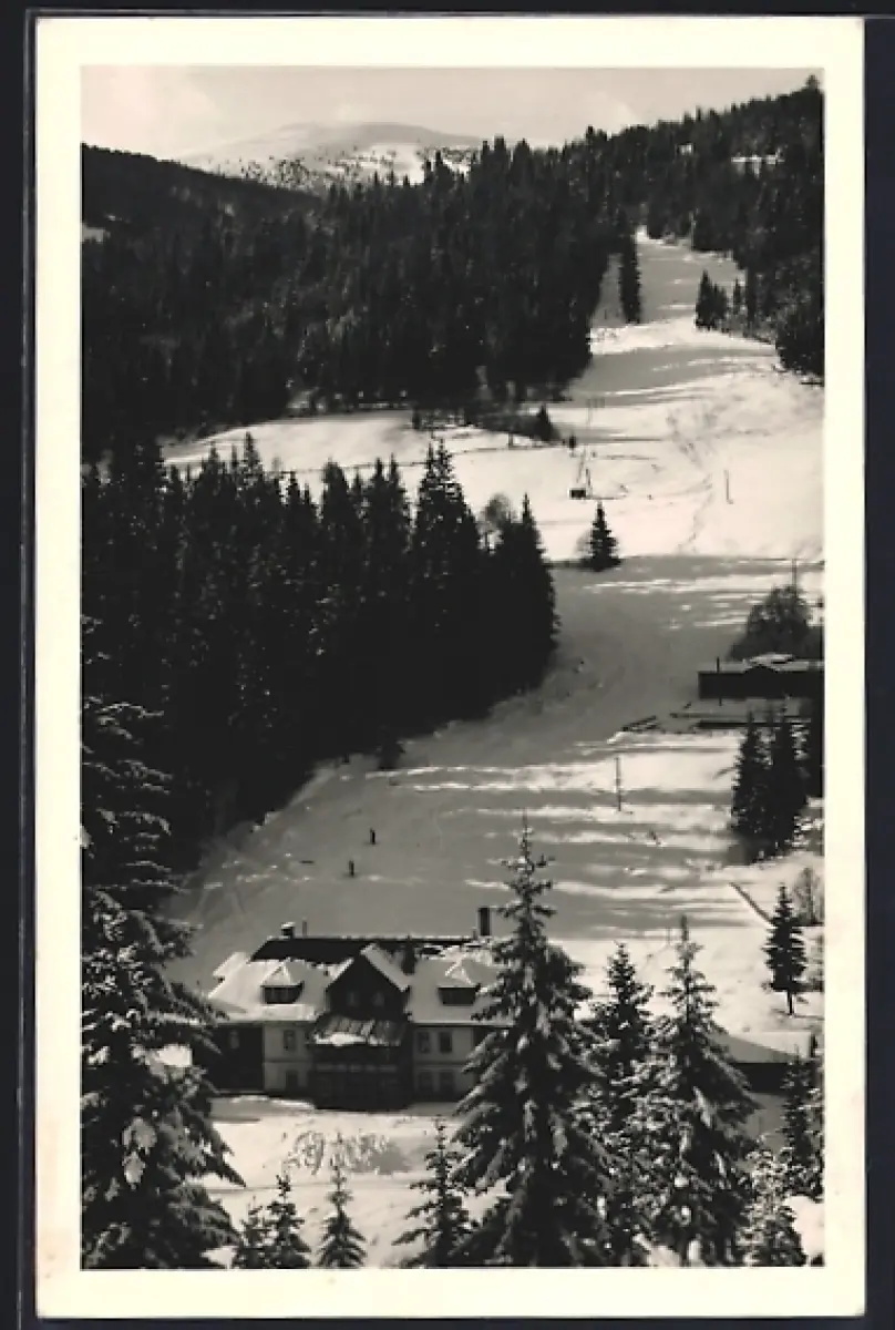 AK Stadl a. d. M., Pension Kaltwasser mit Skipiste im Winter