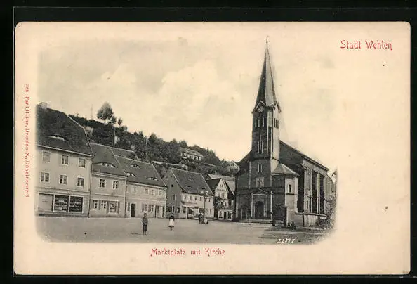 AK Stadt Wehlen, Marktplatz mit Kirche
