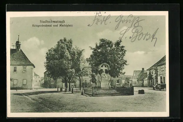 AK Stadtschwarzach, Kriegerdenkmal und Marktplatz