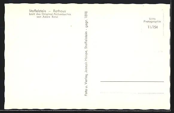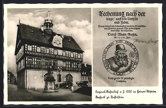 AK Staffelstein / Mainthal, Rathaus, Titelblatt des Original Rechenburches von Adam Riese