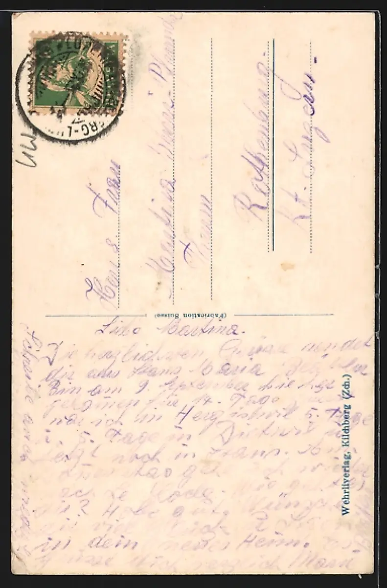 alte Ansichtskarte, gelaufen, Stempelspur, Eckknick rechts unten, guter Zustand