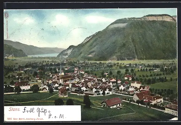 AK Stans, Ortsansicht aus der Vogelschau mit Kirche