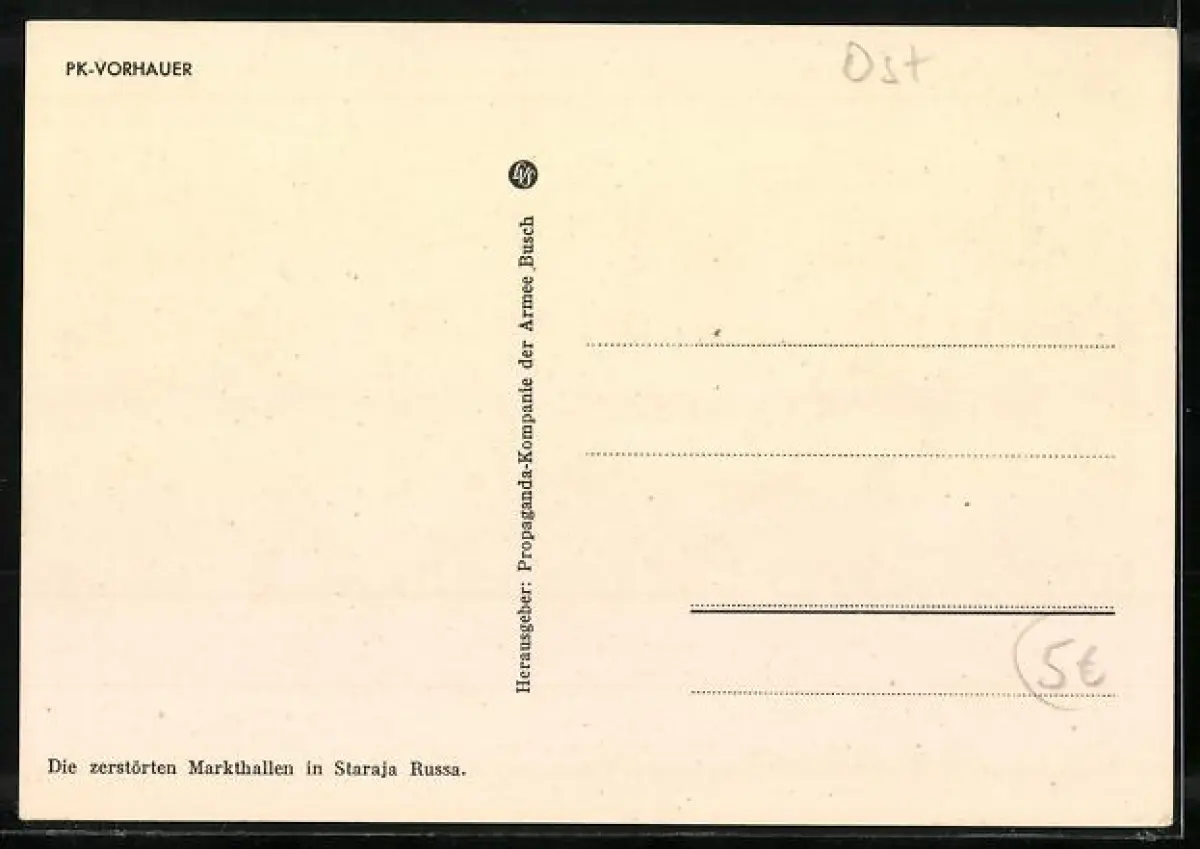 AK Staraja Russa, zerstörte Markthallen im Ort