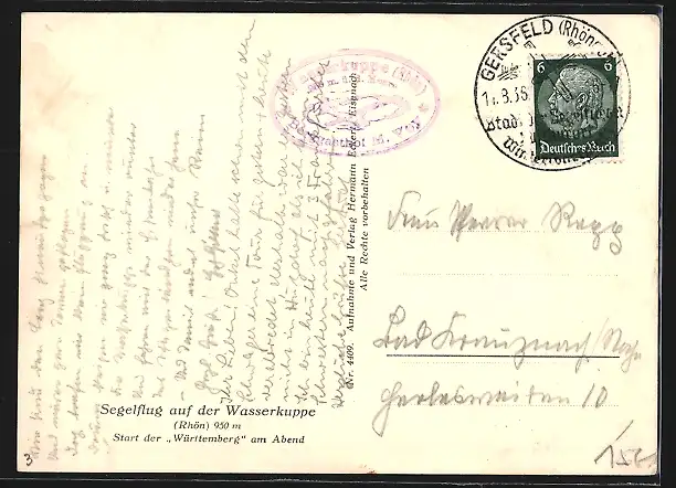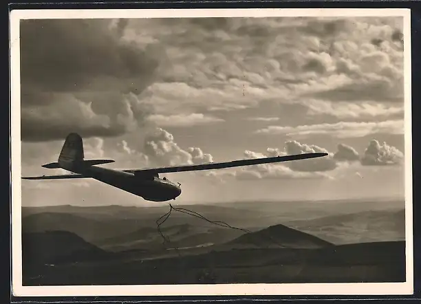 AK Start des Segelflugzeuges Württemberg am Abend, Ausklinken des Startseils