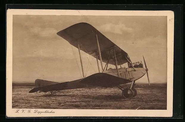 AK Startbereites L. V. G. Doppeldecker-Flugzeug