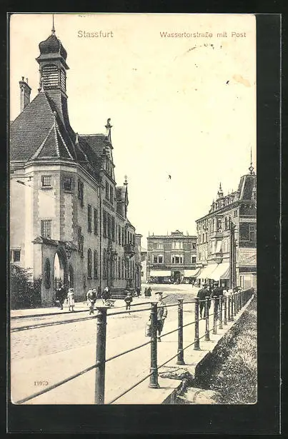 AK Stassfurt, Wassertorstrasse mit Post