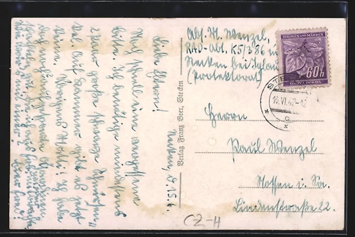 alte Ansichtskarte, gelaufen 1942, Stempelspur, Bugspur links mittig, guter Zustand