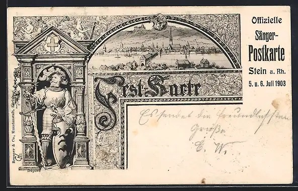 AK Stein a. Rh., Sängerfest 1903, Ortsansicht, Ritter mit Wappenschild