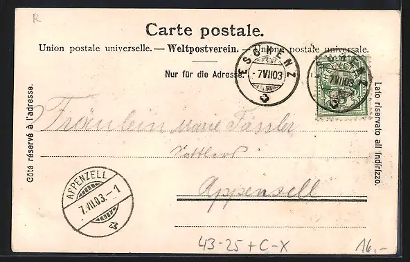 alte Ansichtskarte, gelaufen 1903, guter Zustand