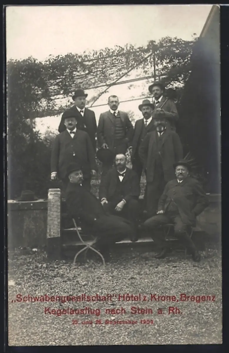 AK Stein a. Rh., Schwalbengesellschaft Hotel zur Krone, Bregenz, Kegelasuflug