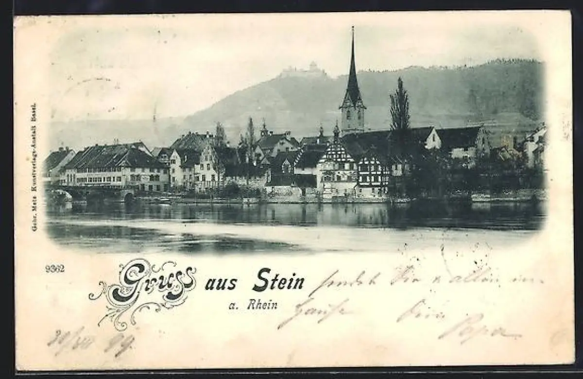 AK Stein a. Rhein, Uferpartie mit Kirche