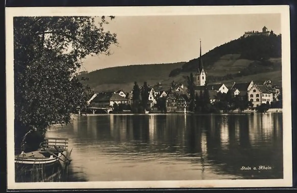 AK Stein a. Rhein, Uferpartie mit Kirche