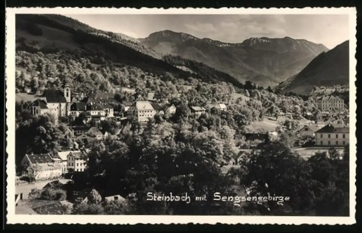 AK Steinbach an der Steyr, Totalansicht mit Sengsengebirge