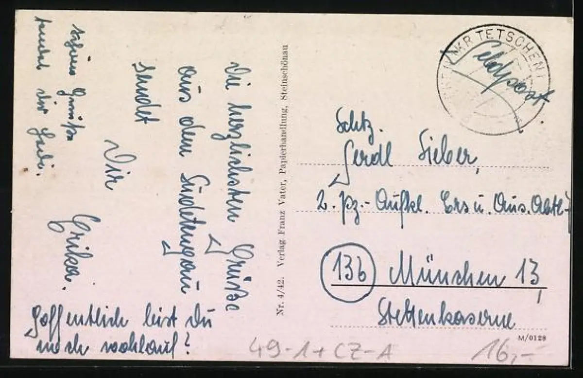 alte Ansichtskarte, gelaufen als Feldpost, Eckknick rechts unten, guter Zustand