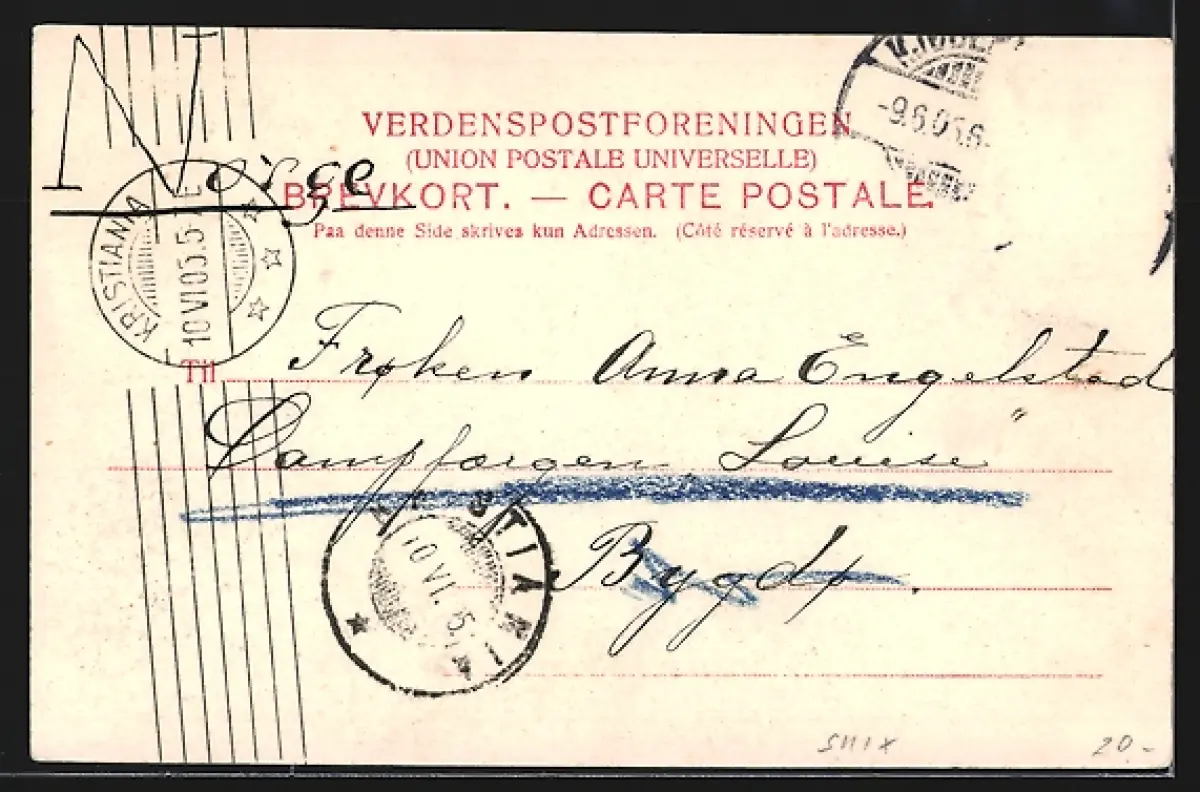 gelaufen, Briefmarke entfernt 1905, rückseitig Oberflächenschaden, guter Zustand