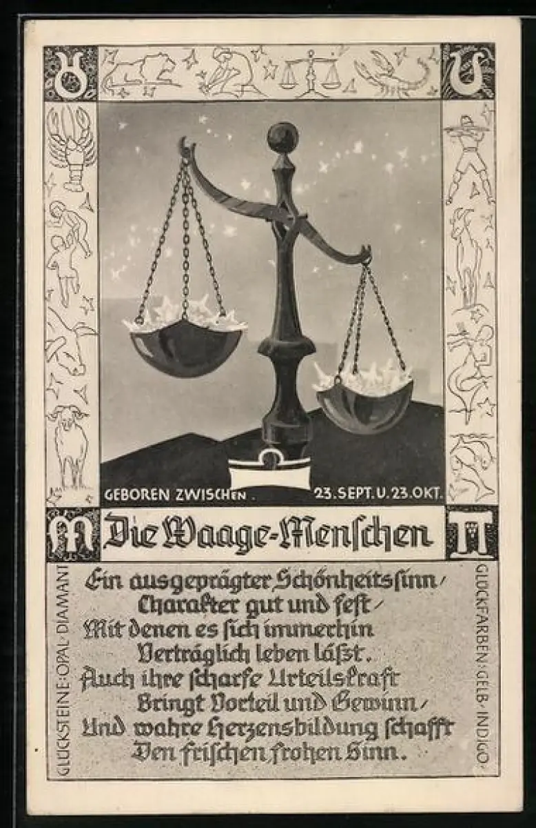 AK Sternzeichenkarte Die Waage Menschen, Waage mit Sternen