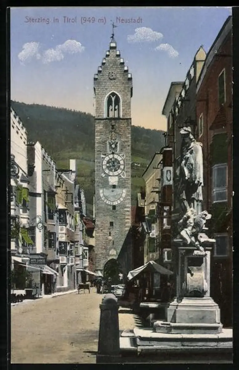 AK Sterzing in Tirol, Neustadt, Strassenpartie mit Turm