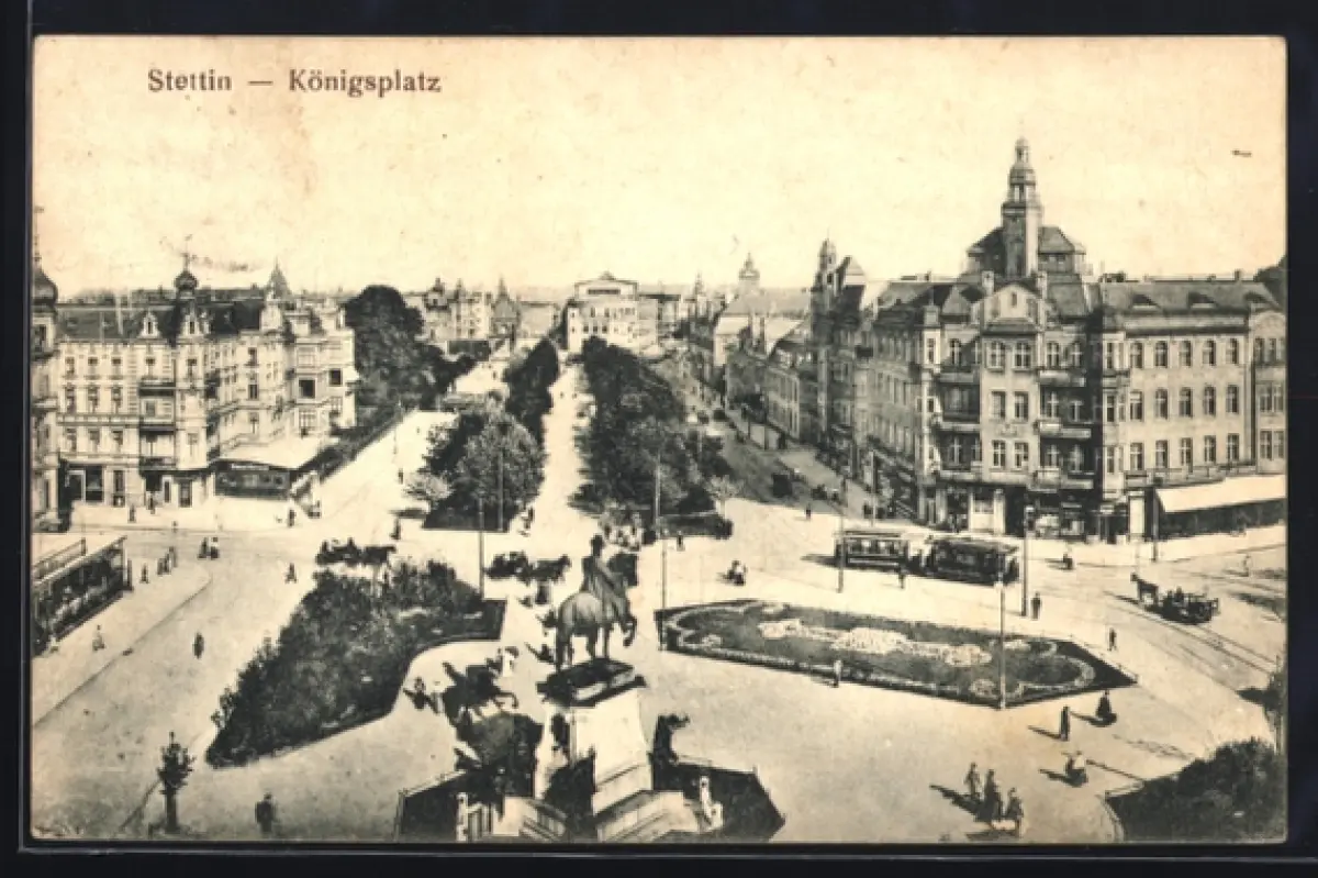 AK Stettin, Königsplatz mit Strassenbahn