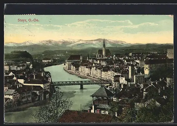 AK Steyr /O.-Oe., Teilansicht mit Kirche