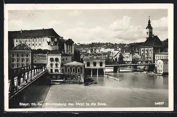 AK Steyr /Ob.-Oe., Einmündung der Steyr in die Enns