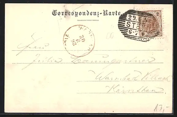 alte Ansichtskarte, gelaufen 1898, Stempelspur, guter Zustand