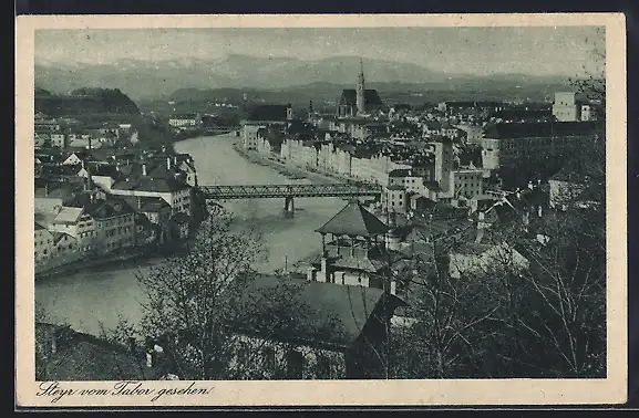 AK Steyr, Teilansicht mit Kirche vom Tabor aus gesehen