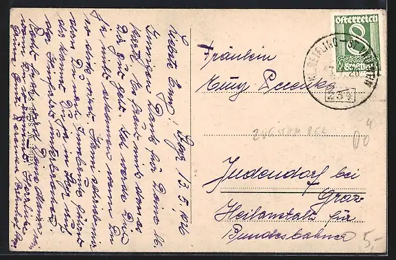 gelaufen 1926, Eckknicke re. oben, guter Zustand