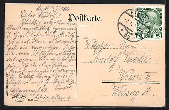 alte Ansichtskarte, gelaufen 1910, guter Zustand
