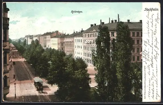 AK Stockholm, Karlavägen, Pferdebahn