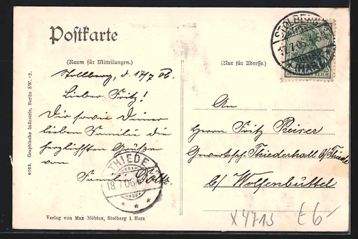 alte Ansichtskarte, gelaufen 1906, guter Zustand