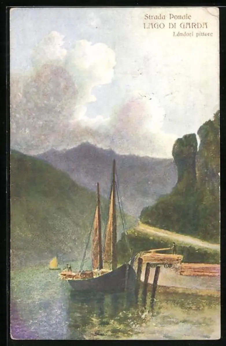 AK Strada Ponale, Lago di Garda, Landori pittore, Segelboot