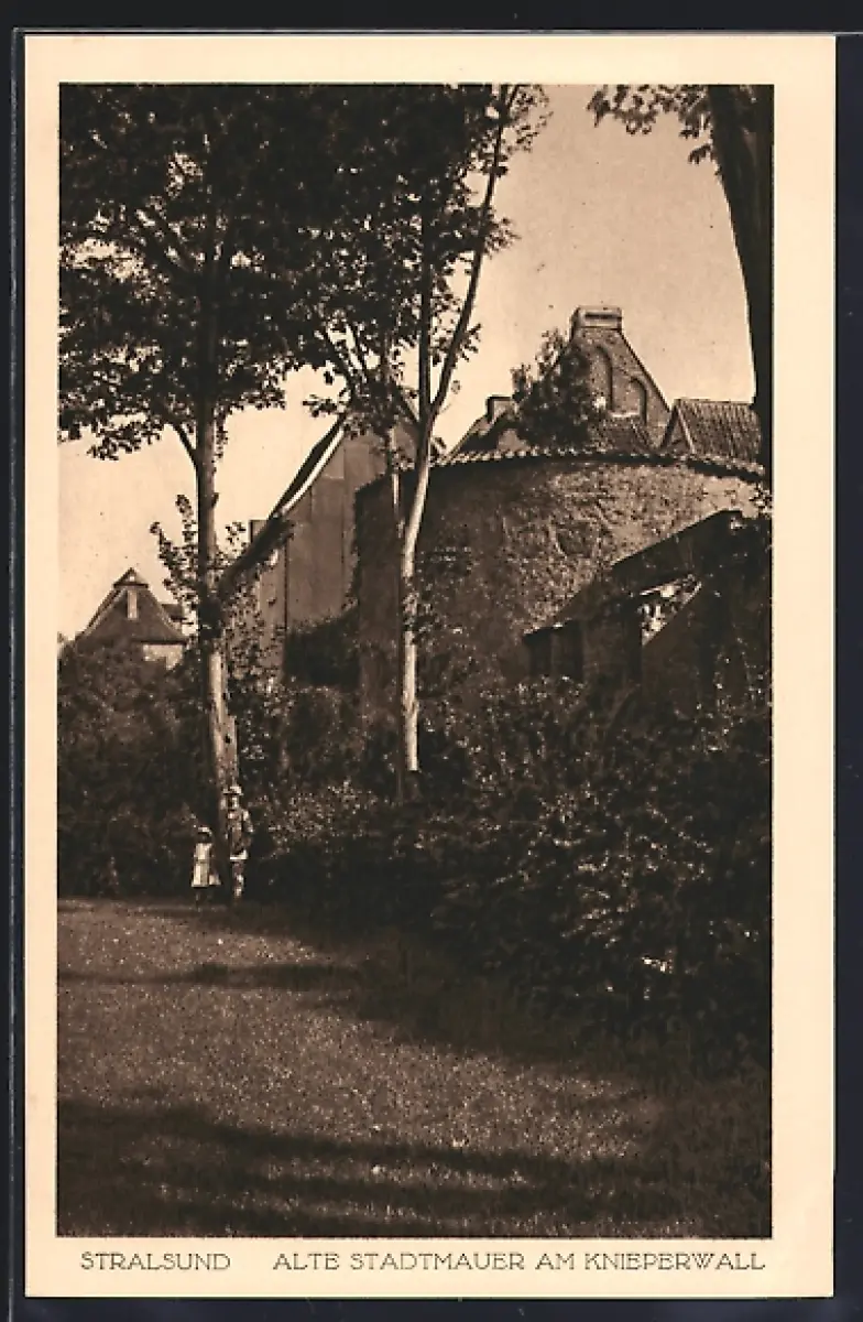 AK Stralsund, Alte Stadtmauer am Knieperwall