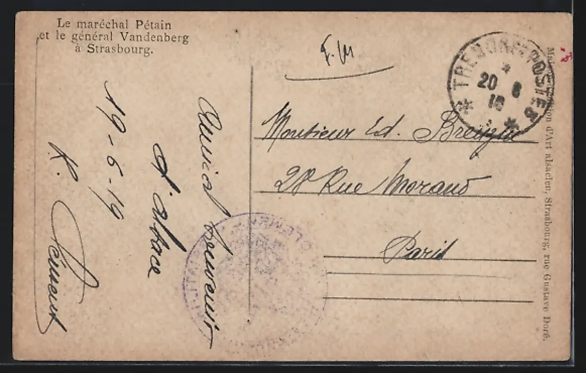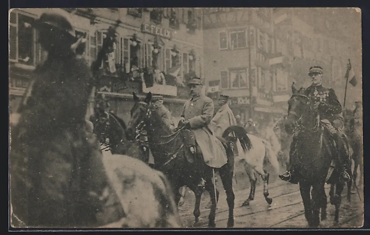 AK Strasbourg, Le maréchal Pétain et le général Vandenberg à cheval dans la rue
