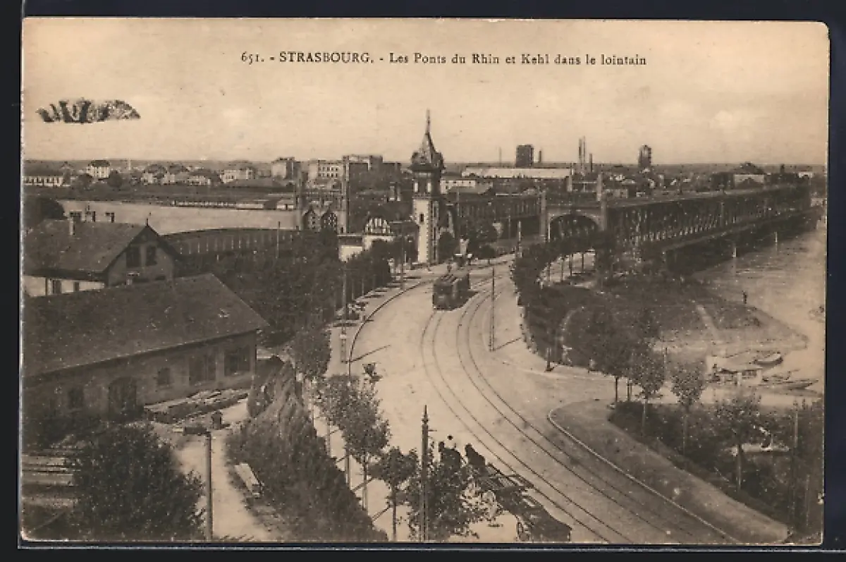 AK Strasbourg, Les Ponts du Rhin et Kehl dans le lointain, Strassenbahn