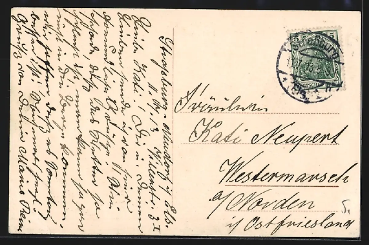alte Ansichtskarte, gelaufen 1913, Stempelspur, guter Zustand