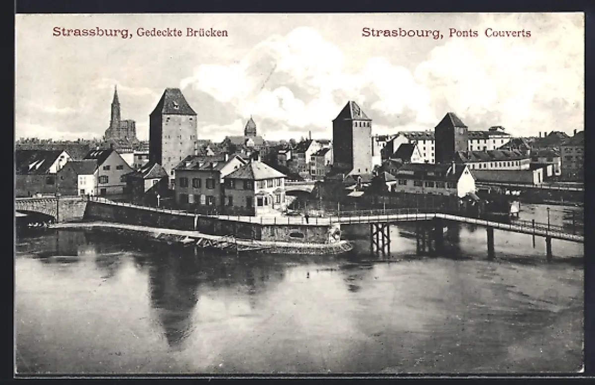 AK Strasbourg, Ponts Couverts et vue sur la ville