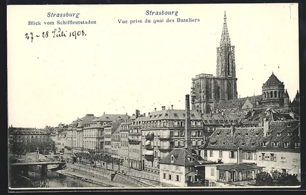 AK Strasbourg, Vue prise du quai des Bateliers