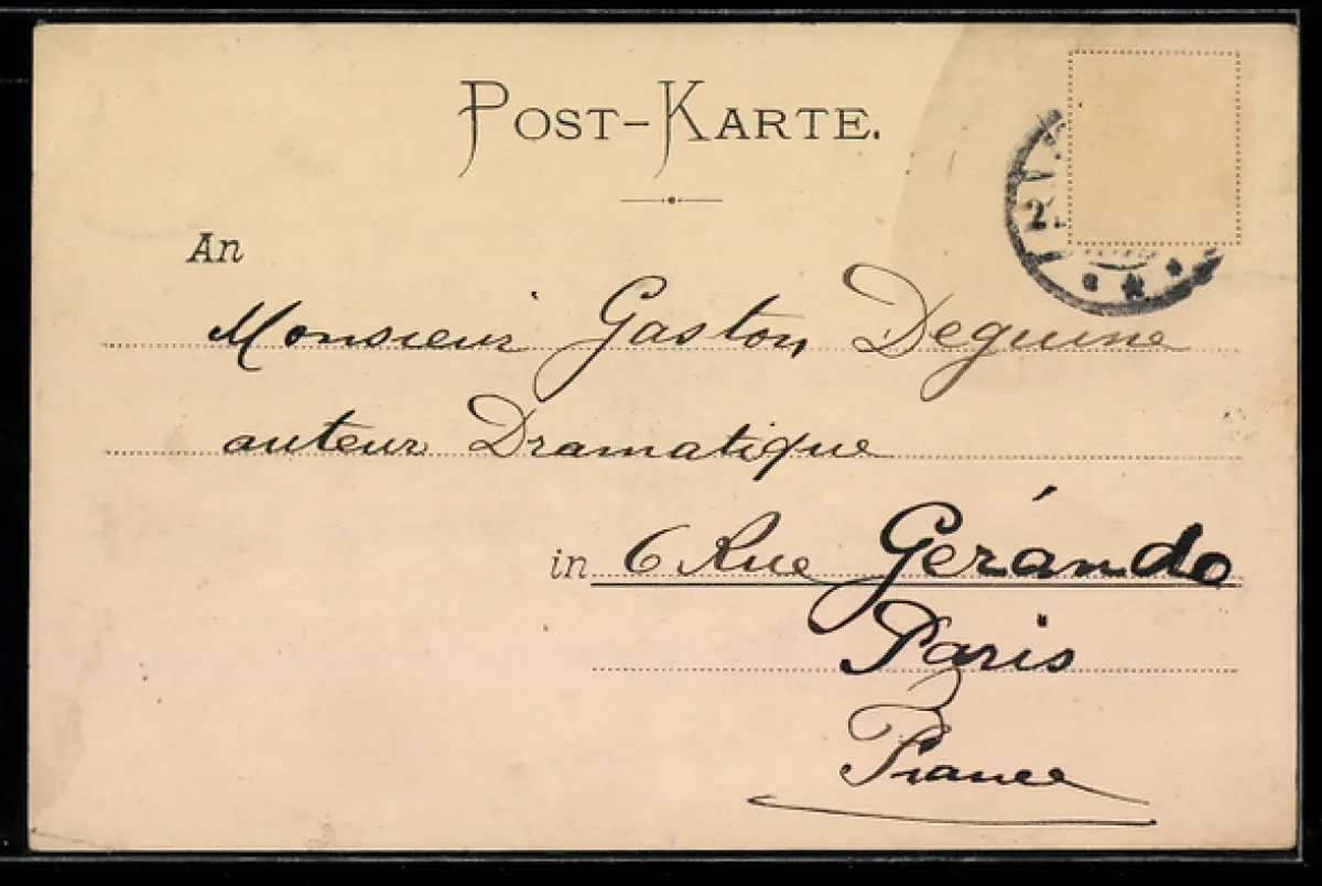 alte Ansichtskarte, gelaufen, Briefmarke entfernt, vorderseitig Klebe- und Papierreste, sonst guter Zustand