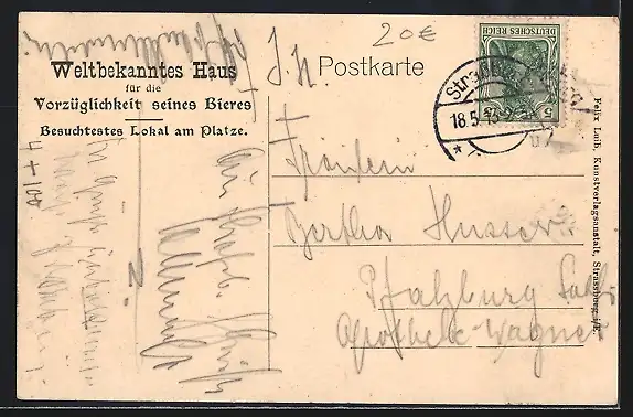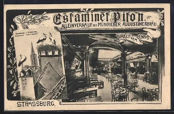 AK Strassburg, Estaminet Piton, Alleinverkauf des Münchener Augustinerbräu, Innenansicht, Storchennest