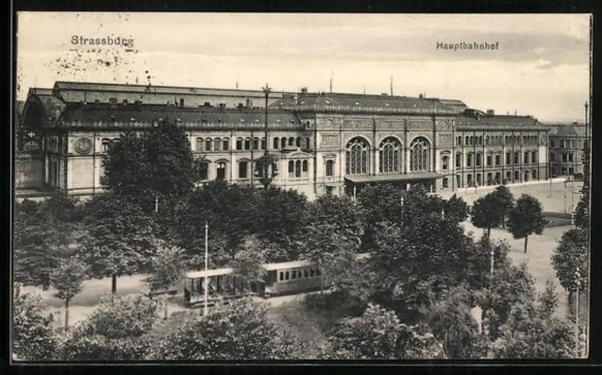 AK Strassburg, Hauptbahnhof mit Strassenbahn