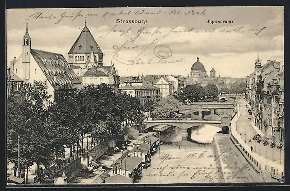 AK Strassburg, Jllpanorama, Partie aus dem Ort mit Kirche