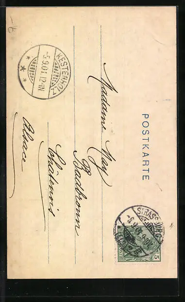 alte Ansichtskarte, gelaufen 1901, Stempelspur, guter Zustand